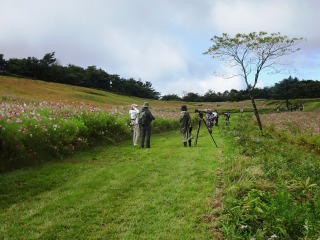 訊いてみれば花目的ではなく、野鳥のノビタキ目当ての人達らしい。