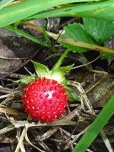玄関の飾り付け用にヤマグリを拾い、道端の花を写真に撮ってゆるゆる歩く二人。