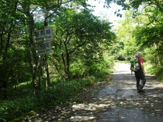 アップダウンのない林道歩きを小1時間こなすと、見覚えのある五叉路。