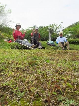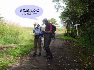 ここで登山道通しで香坂峠経由神津牧場に下るFさんと、林道を辿って長野県側に周回する我が家とのお別れ儀式。
