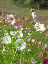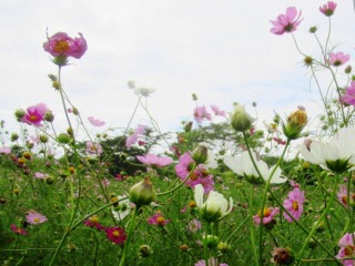 昨日は曇りできょうは晴れる予報だったので、晴天下のコスモスに期待して予定を一日順延した。