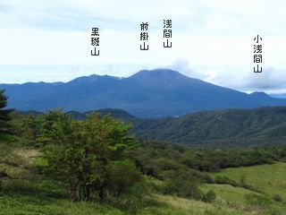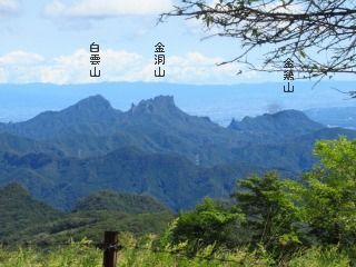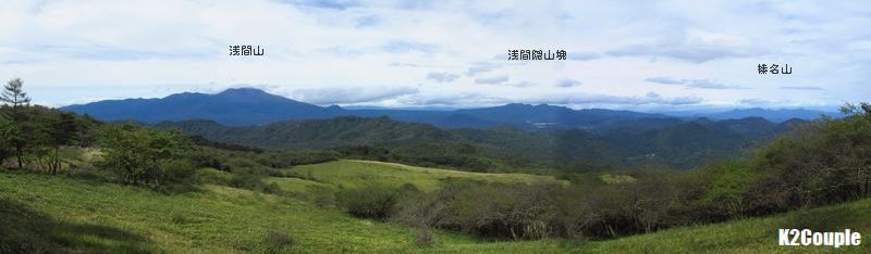 山頂をあとに少し下ると北の展望が眼前に広がり、浅間山の雲は取れてたけど遠くまでは見えない。