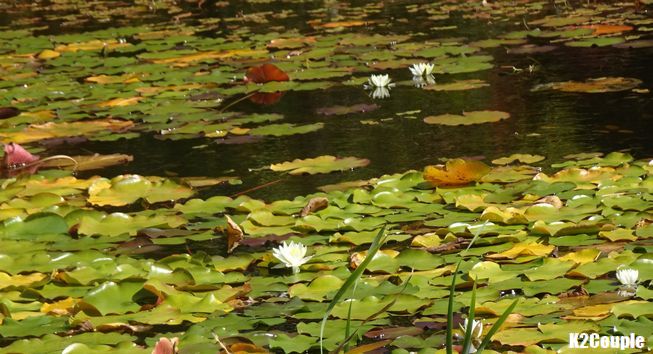 ▲ 水面に影を落として、気高く品良く | ▲ ハートのようなパックマンのような葉っぱ |