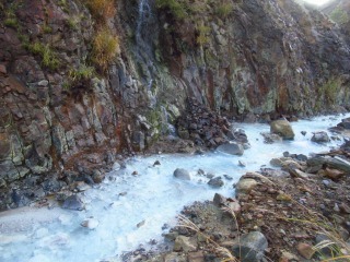 ▲ 白根山逢ノ峰に源を発する殺生沢 | ▲ 殺生沢の水は硫黄で真っ白々 | ||||||||||||||