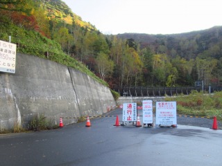 ▲ 色付き始めの紅葉も朝陽なく | ▲ 警戒レベル2:志賀草津道路の草津側は通行止め | ||||||||||||||