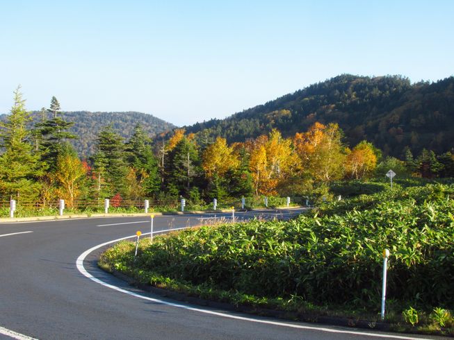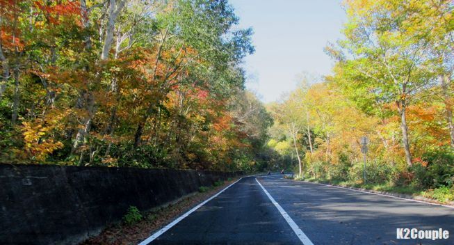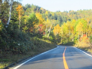 ▲ 朝陽に映える紅葉ラインを快調に下って | |||||||||||||||
