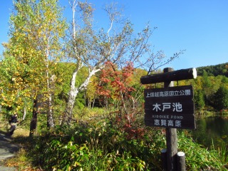湖沼巡りは、下りながら標高順にしようと思います。 で、先ずは木戸池ですが。 紅葉の美しさはイマイチのようだったが、池の静けさは一級品だった。 |