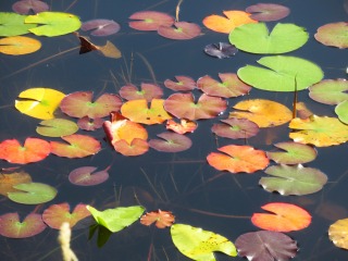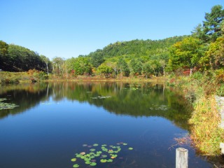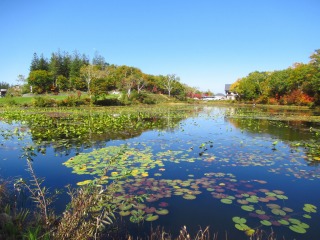 ▲ 紅葉木に囲まれ静かに佇むヒツジグサの池(蓮池) | |||||||||||||||