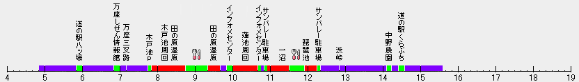 ■ 4:50 = 倉渕 = 5:50 八ッ場ふるさと館 6:00 = 万座ハイウェイ = 6:50 万座しぜん情報館 7:00 = 6:50 万座三叉路 = 7:45 木戸池駐車場 | |||||||||||||||