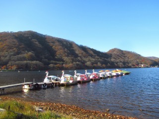 | ▲ 紅葉よりも黄葉がメインだね | ▲ 観光客待ちのスワンボート | ||||||||||||||