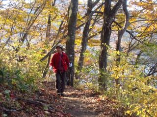 | ▲ 鮮烈なモミジ色エリア | ▲ 湖側の斜面が急で、踏み外して落ちたらドボン | ||||||||||||||