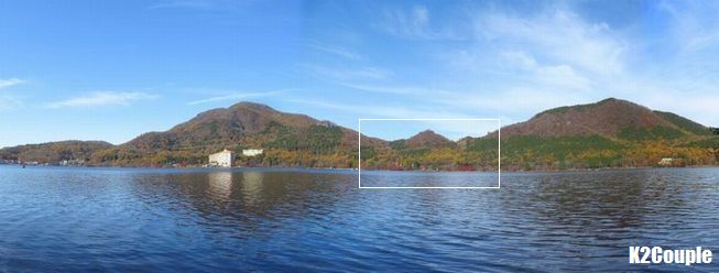 | ▲ 上の画像中で□部分を切り取ってみたら、湖岸の紅葉がきれいだ | |||||||||||||||