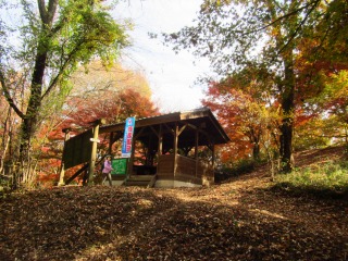 | ▲ 小屋裏の高台に前天神の三角点 | ▲ さくらの広場で綺麗なモミジにつられてツイ |