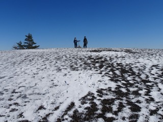 賑やかな声は並行して伸びる夏道からだった。 夏道に合流して山頂をめざしますね、何処でも歩ける山頂ですけど (^^; 山頂標識でセルフ撮影中の女性に声掛けして、スマホを押してあげる。 |