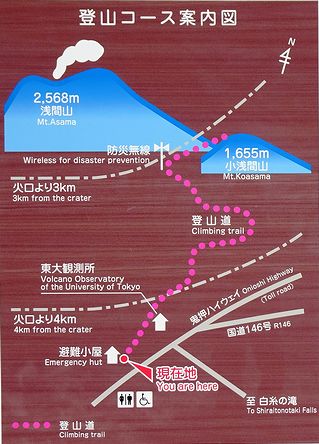 | ▲ 登山コース案内図 | ▲ 峰の茶屋登山口から小浅間山 | ||