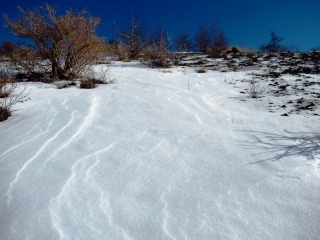 ここからミニコルに下って西峰に登り返す。 ラッセル要員のはらっぱ、失業しました (^^; ![]() |