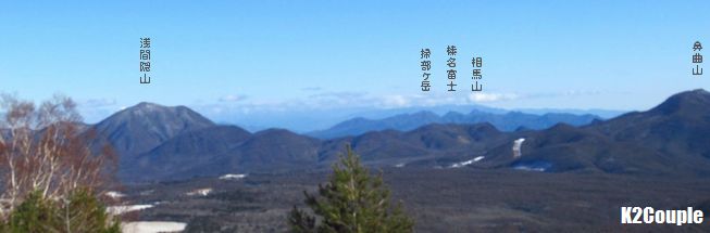 | ▲ 樹林が薄くなると南東の展望が開ける | ▲ 軽井沢の上に妙義と西上州の山 | ||