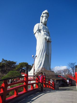 ▲ 観音様を見上げて 身長41.8m 体重6,000t | ||