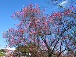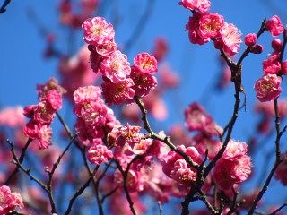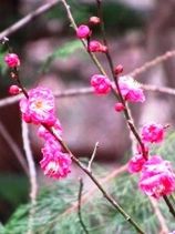 | ▲ 山頂からバードハウスへ下ると | ▲ 空き地に満開の紅梅 | ||
