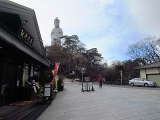 | ▲ 高崎市営観音山頂駐車場(2025.04から無料) | ▲ 駐車場から観音様が見える | ||