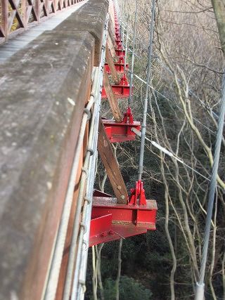 | ▲ 吊りケーブルの固定部分 | ▲ ひびき橋の両端に設置 | ||