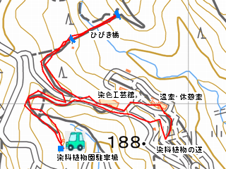 | 染料植物園駐車場 13:55 ... 14:10 ひびき橋 ... 14:20 染料植物園 14:50 ... 14:55 染料植物園駐車場 15:00 = 15:40 ■ | |||