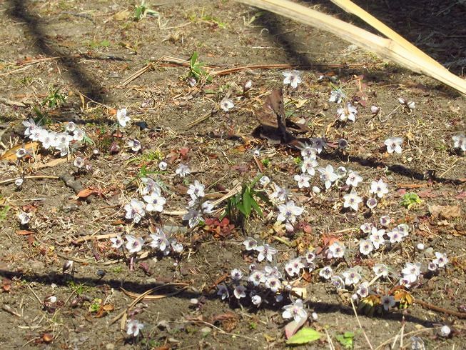 | ▲ セツブンソウが庭に、こぼれたように咲いている |