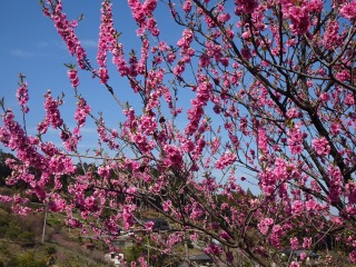 春の訪れを感じさせるように、鮮やかな桃色が山郷全体を彩ります。