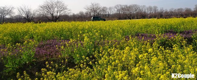 荒廃した農地を活用し地域住民が景観形成のために始めたもので、花桃を中心に桜やレンギョウなど約7千本の花木が植栽されています。
